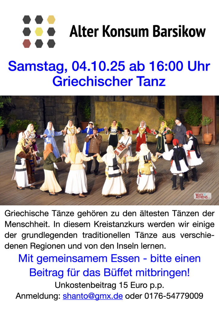 Samstag, den 4. Oktober ab 16:00 Uhr Griechischer Tanz mit Shanto am Alten Konsum